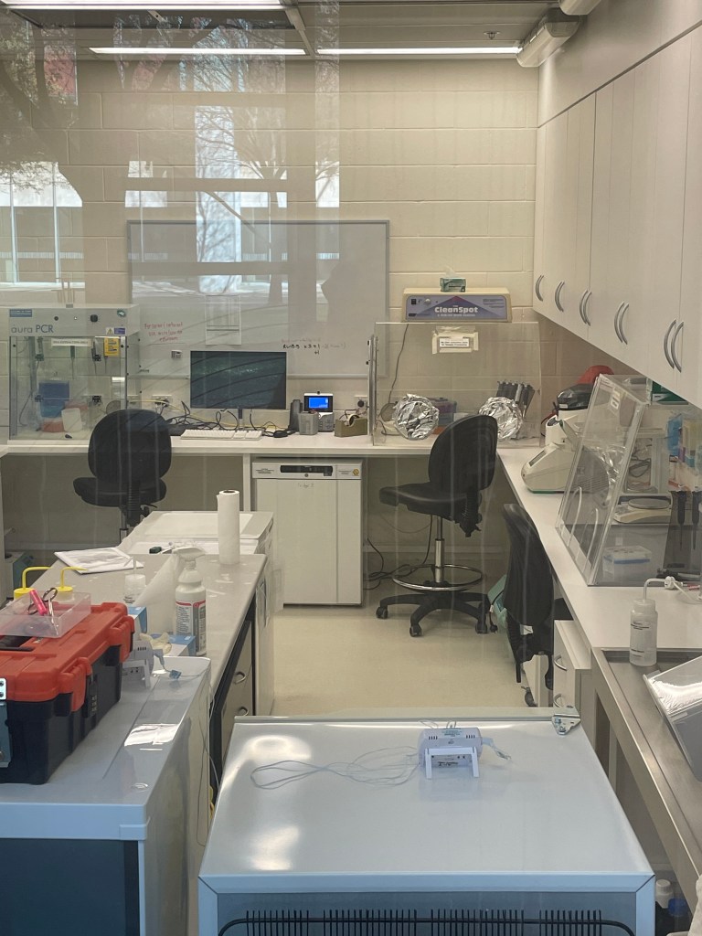The Historical DNA Laboratory is designed for working on specimens with DNA that is degraded, but not to the extent of being truly ancient DNA. These include museum and herbarium specimens, environmental samples that are <200 years old, and historic or fragmentary forensic materials. The laboratory is physically isolated from other molecular laboratories, has positive air pressure, and users maintain strict protocols around cleaning and use of appropriate PPE.